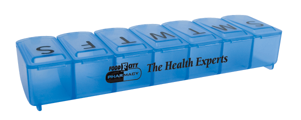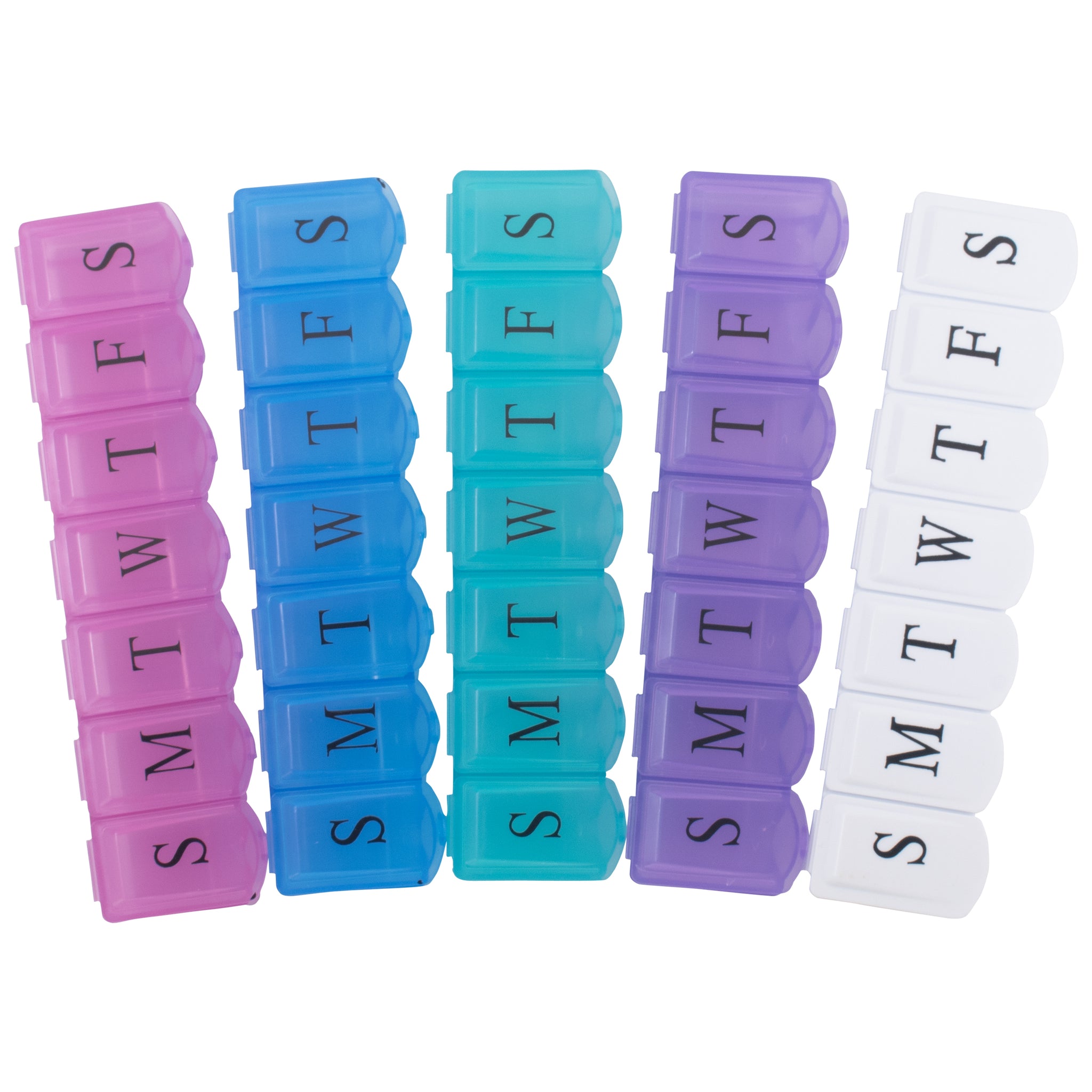 Description: Seven pill compartments for weekly organization. Compartments are contoured for easy pill removal. Unique design is easy to open and offers secure storage. TOP RATED PRODUCT!