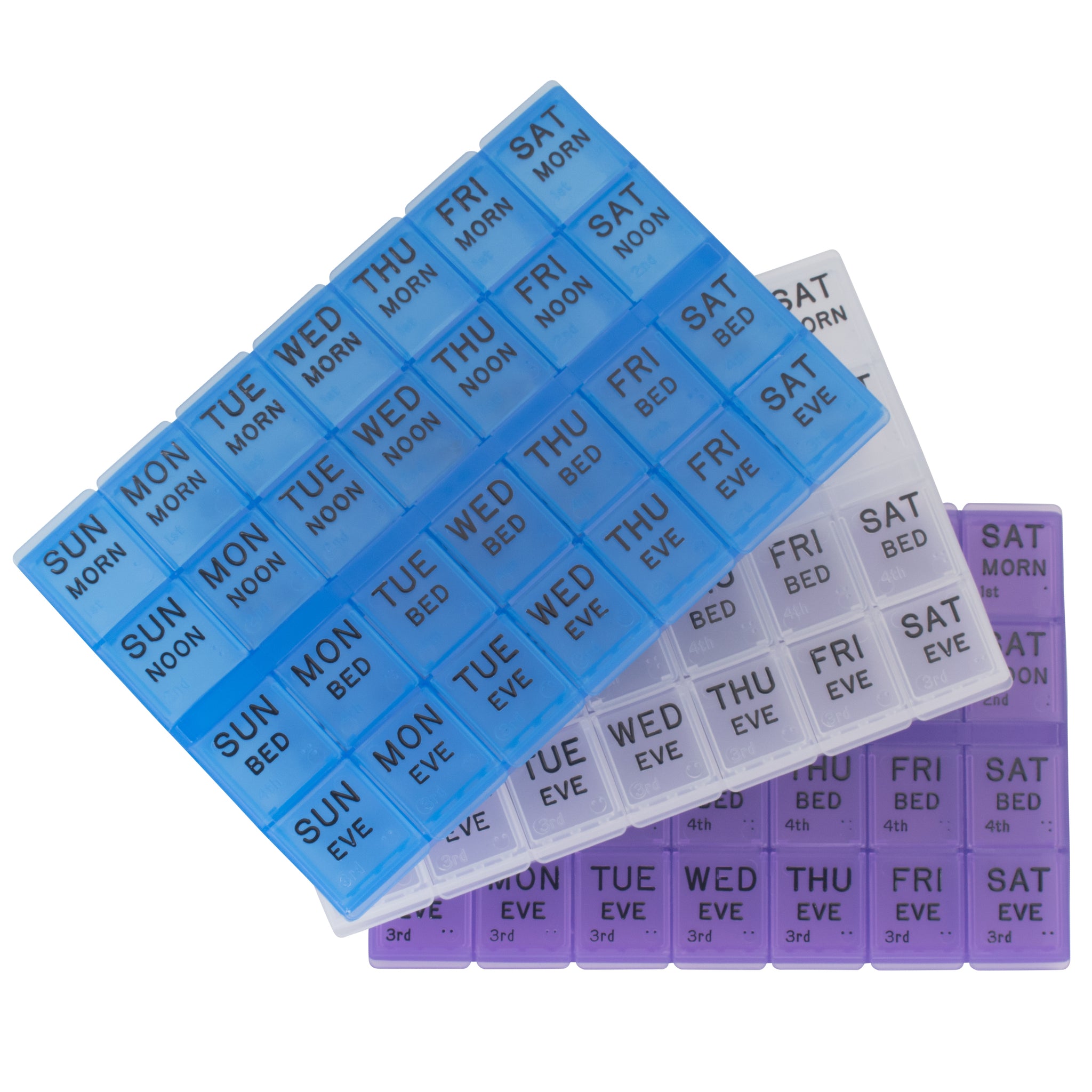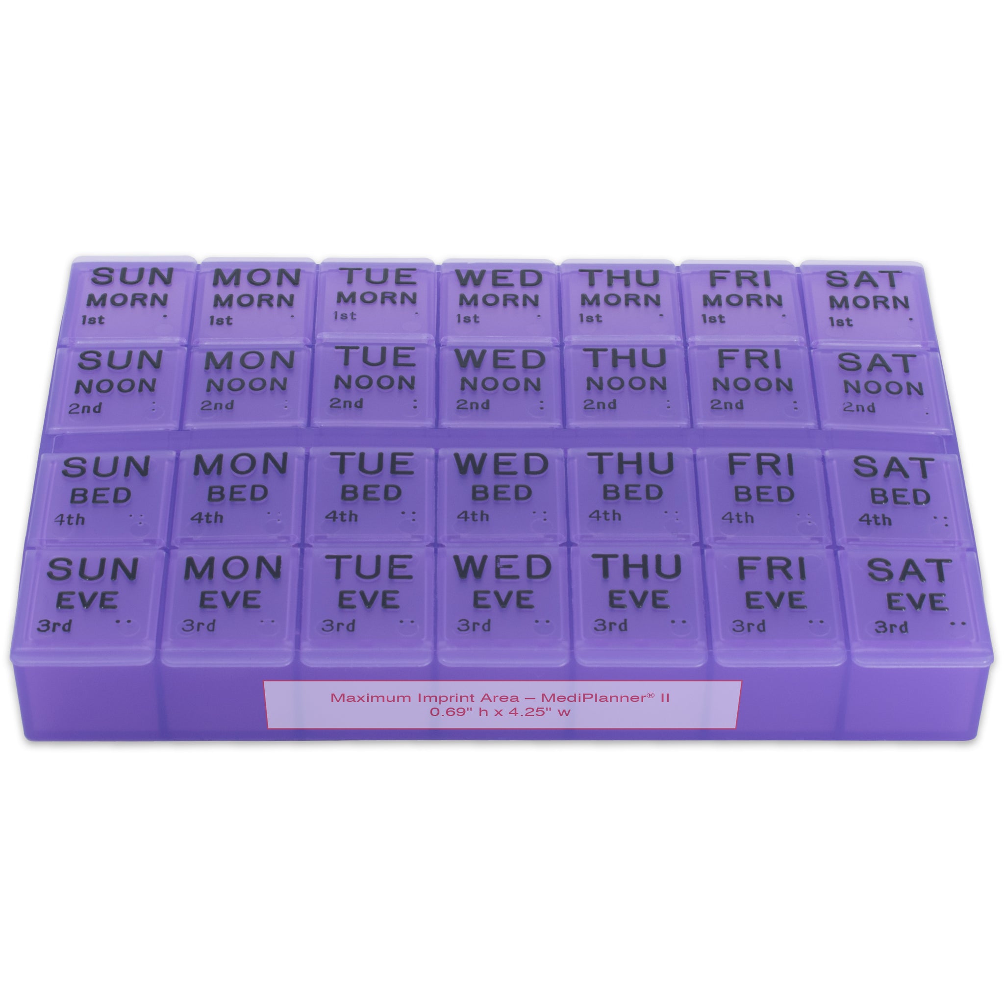 Description: 28 extra large, easy to open compartments. Designed for the sight impaired with raised letters and Braille markings.
